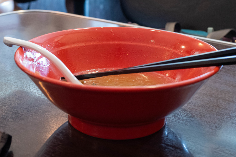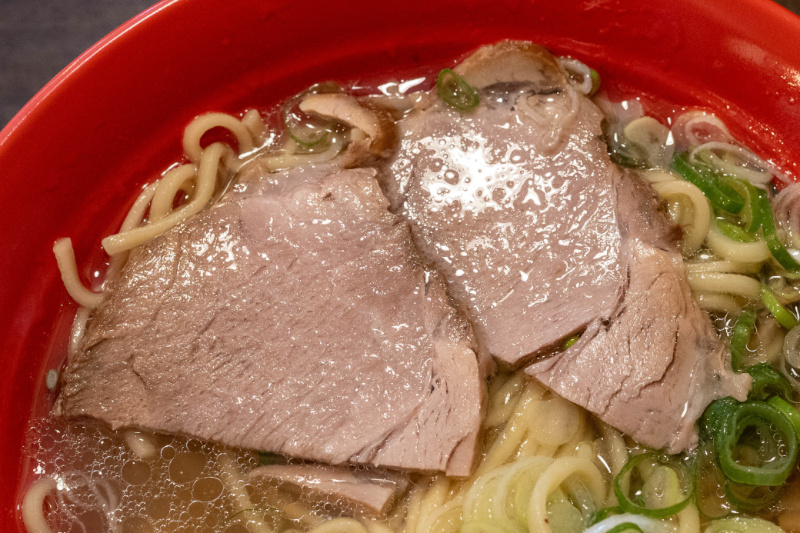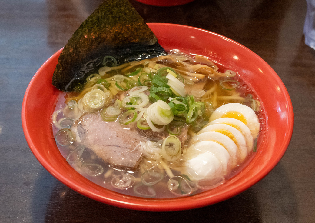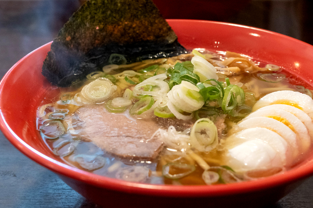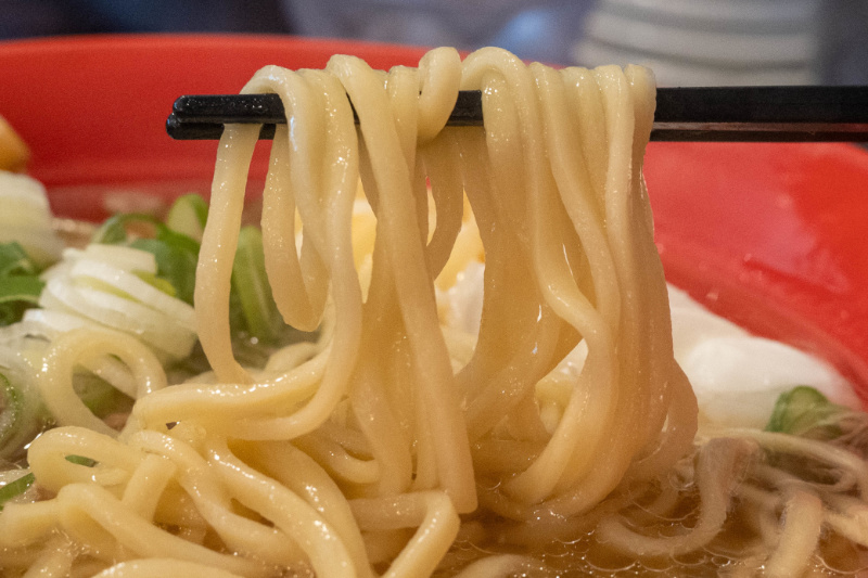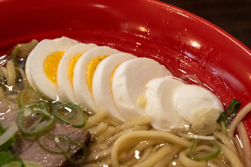 麺に味玉、茹でモヤシ、茹でキャベツなどがトッピング |