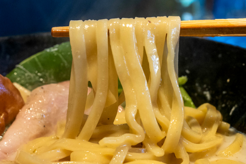 決して仲良しこよしの馴れ合いイベントはイヤなので参加する時には、必ず心の中で思うようにしてます。 『アンタイが1番美味しかったと言われたい』 たぶん参加してる店舗の店主達は、僕みたいに声に出さずとも同じ事を思ってるハズです。 強者揃いのお店が参加しているので、片手間でやっても勝てません。 だからこそ今回もアンタイは本気で作りました。 そんなワケで、きのこポタージュのスープの秘密を話します。 しめじや舞茸、エリンギなど数種類のきのこと香味野菜でグラッセします。 牛乳を使い程よいポタージュスープを作りますが、これだとただのパスタになってしまいます。 ココまでても普通に美味しいが… そんなのつまらない。 せっかくラーメン屋が作るんだったら、ここまでしちゃうんだよってのが今回のバカなトコ。 大量の豚頭とゲンコツを10時間焚き上げ、そのまま限定で出せるくらいの濃度と旨味が詰まった豚骨スープと先程のポタージュスープをアンタイの黄金比で合わせて出来上がったのが、今回のきのこのポタージュスープになります。 ぶっちゃけ、いつものつけ麺用で焚いている濃厚スープでも似たような味は作れます。 ただ、やはり豚骨由来のマイルドでクリーミーな強い旨味をどうしても入れたかったのと、普段のアリモノを使ってイベントに参加しても、お客さんに失礼、尚且つ強いインパクトは残せないと思い、ここまでやる事にしました。 味は好みがあるので、万人に受ける事は難しいですが、自分が納得して作り上げたモノを提供出来るのはラーメン屋冥利に尽きます。だからこそ食べて頂きたいし、関わってくれた方達が少しでも笑顔になって欲しい。 |