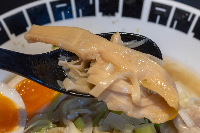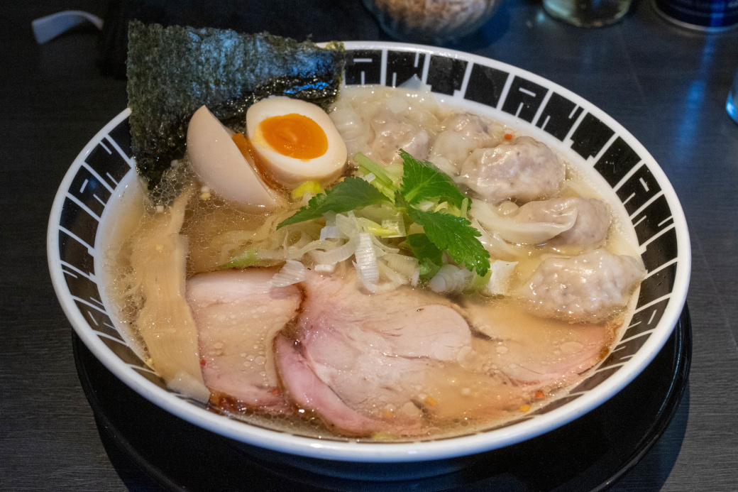 味玉入り中華そば 1050 [2016/1/6] [2018/8/21] [2022/8/30] ワンタン [2024/2/17] 雲呑そば [2017/1/27] 1180、チャーシューそば 1180、特製中華そば 1180 塩中華そば 930 [2019/7/23] [2020/11/11]、 味玉入り塩中華そば 1050 [2019/12/18] [2024/11/13]、 塩雲呑そば 1180 [2026/1/14]、塩チャーシューそば 1180、特製塩中華そば 1180 濃厚中華そば 950 [2016/11/9/2017/10/26] [2018/4/6] [2018/5/18] [2019/1/15] [2019/2/5]、特製濃厚中華そば [2023/1/31] [2024/8/30] 1200 生姜中華そば 950 醤油 [2020/3/5] / 塩 [2020/3/17]、特製生姜中華そば 1200 《その他》 あぶらそば 950