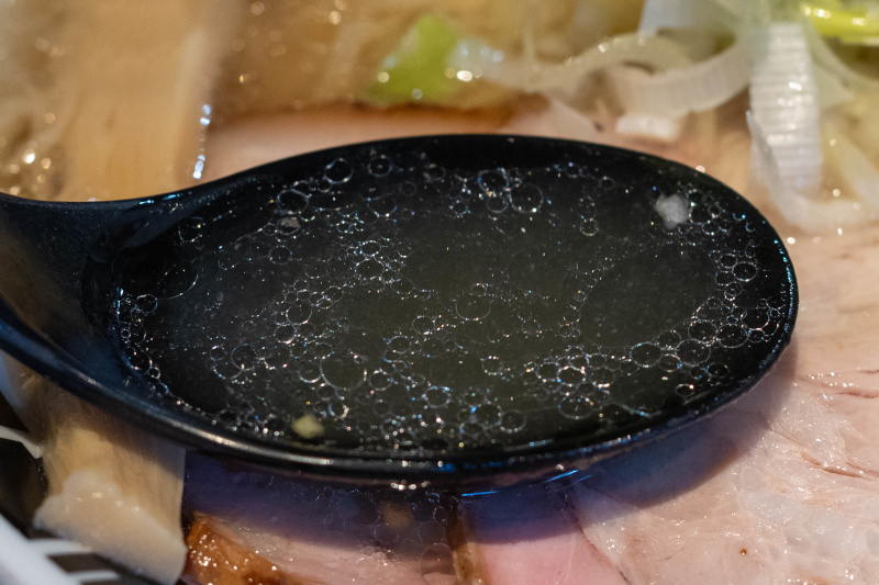 鶏ガラ・背ガラ・もみじ・豚足などを強火で何時間も炊き出した動物系スープと、鯖・鰹などの魚介系スープをブレンド