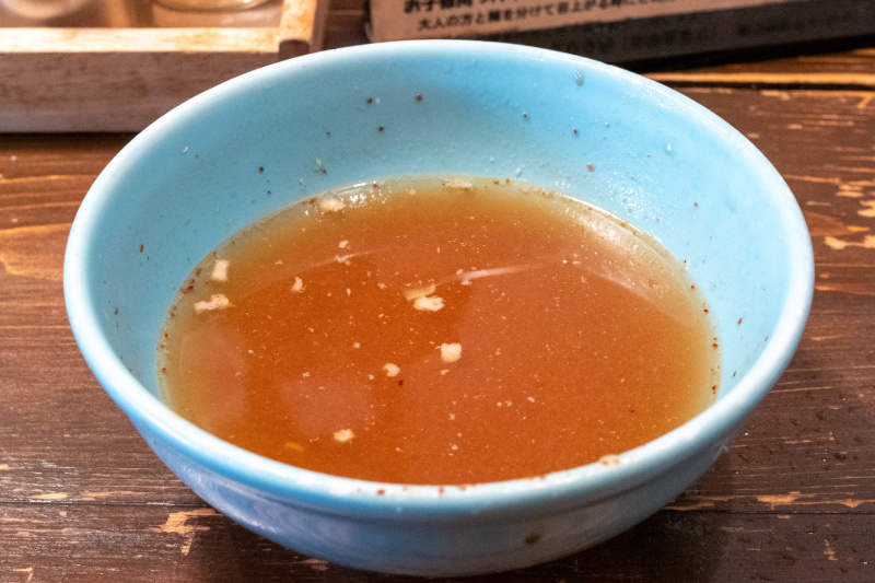 和風魚系ダシのスープ割りで熱々のスープに戻り、風味が立ち上がって二度楽しめる |