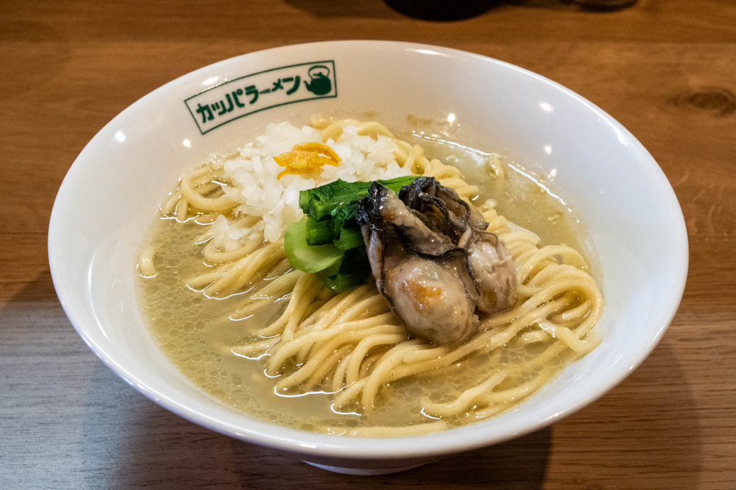 (限定) 牡蠣ラーメン [2026/1/10] ¥1200 2026/1/5 からの 1月限定メニュー POPより 牡蠣の旨味たっぷりの濃密牡蠣スープに