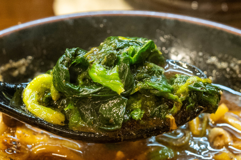 ベースはとき卵ラーメン。 ややとろみがあるしっかりと煮出された濃厚豚骨スープ。 そこに特製黒ダレ(焦がしネギ油とのこと)と、大量のブラックペッパーをプラスしてありスパイシー。 濃いめの味付けなこともあり、インパクト大。 麺は太麺で軽くウェーブがかかっている。 やや硬めのモッチリ感のある食感。 濃厚なスープに負けていない。 (山正食品) チャーシューはチャーバーグが2枚。柔らかく、肉の旨味があって美味しい。 サツマイモはサイコロ状で、甘味が箸休めになる。 しめじはソテーしてあり、秋らしい味わい。 ほうれん草は柔らかい。 ジャンキーなブラックラーメン! |