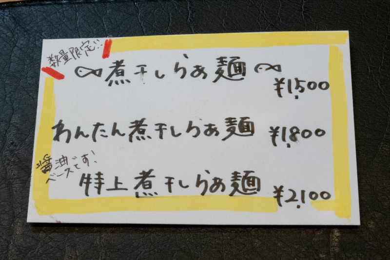 (限定) 煮干しらぁ麺 [2025/12/23] ¥1500 (公式Xでの事前告知なし) |