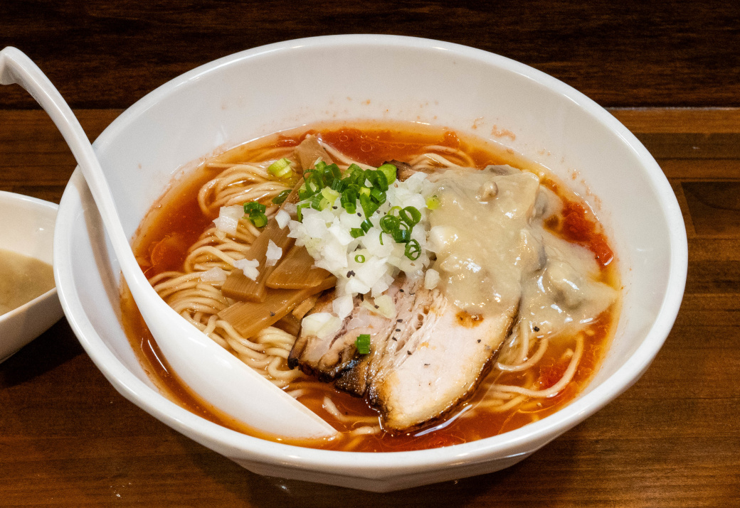 ※テイクアウト可能 一年ぶりのWスープラーメンです! 最近はほとんど見かけなくなったタイプですが、じっくり時間をかけて炊いた濃厚動物白湯と当日の朝炊きたてのフレッシュな魚介出汁を提供直前に合わせるラーメンです! 今回の動物白湯はゲンコツに鶏も少し加えてみました。 魚介はカタクチイワシ、昆布、鯖節、宗田節、うるめ節など。 脂はラードと鶏油のブレンド、醤油ダレはキッコーゴ丸大豆ベース。 濃厚な豚骨と魚介の旨味両方感じられるさっぱりしたスープになってます。 チーズご飯もとても合います。 |