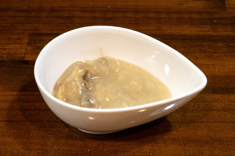 ※今回は提供作業の都合上替え玉は不可とさせていただきます。 ※麺量 並270g(1.5玉) 小180g(1玉、トッピングサービス) 大360g(2玉、大盛券) 麺量が変わるだけでつけダレの量は変わりません。 ※テイクアウト可能(温・冷、スープの容器はラーメンと同じです。) ※今回の限定は提供にかなり時間がかかります。レギュラーメニューと同一グループでご注文いただいても提供できるのはレギュラーメニューが食べ終わる頃になります。 毎年この時期に作っている「飲むホタテ」な濃厚つけ麺です! ここのところ北海道産ホタテの異常な高騰が起きているため来年以降値段が高すぎて作れなくなるかもしれません。 そうすると今回が最後になる可能性があります。 スープに使用しているホタテは北海道宗谷・猿払産天然刺身用ホタテ貝柱100%の贅沢仕様です! 先日お出ししたホタテラーメンと比較してもスープに使っているホタテの濃さはおよそ1.5倍!! 中国産イタヤガイや国産でも産地指定のない普通のホタテとは全く違う濃厚な香りと甘味が存分に味わえます! おススメの食べ方は ①まずは卓上調味料などは使わずそのままのつけダレでホタテを存分に味わう。 ②食べ進める間にベビーリーフや酢タマネギなどで口をリフレッシュする。薬味はつけダレに入れずそのまま食べる方がおススメです。 ③スパイスペーストを麺にまぶしてつけダレにつけて食べる。 ④お好みで麺の方に卓上の胡椒をふって食べる。(お酢や唐辛子をつけダレに入れるとホタテの味がわかりにくくなります。) ⑤お腹に余裕のある方は割る前の濃いスープをチーズご飯にかけるとたまらない美味しさ!めちゃくちゃおススメ!!チーズご飯に胡椒をふるのもアリです! ⑥最後に昆布と煮干しの出汁でスープ割り。スープ割りすると温度が上がって塩分濃度が下がり、よりホタテの旨みを感じられます。少ししかスープが残っていなくても遠慮せずスープ割りしてください! スープの底に砕いた貝柱が沈んでいるので下からすくって飲んでみてくださいね。 一杯のなかでさまざまな美味しさが味わえるつけ麺です! 一応大盛りには対応していますが、大盛りにすると濃厚スープがなくなりやすいのでご注意ください。 |