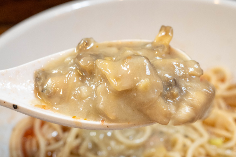 ※可能 替え玉、各種トッピング追加、各種トッピング無し(アサリペースト無しは不可)、スープ割り ※テイクアウト可能 ひやもりつけ麺の限定としては今シーズン最後となります! 4月に作ったときはスープにもしっかりアサリのお出汁をきかせてましたが、今回のスープは煮干し昆布豚のシンプルな物に、アサリペーストとアサリ脂で仕上げてます。 醤油ダレもたまり醤油をきかせたキリッとしたタイプ。 食べ始めは醤油とアサリの香りを楽しみながら、後半でレンゲのアサリペーストを溶かし込むとガツンとアサリが強まります! このつけ麺はブラックペッパーと相性がとてもいいので、ぜひ途中で麺の方にブラックペッパーをふって食べてみてくださいね! アサリなのでチーズご飯ともとてもあいます! 今回も数量限定で別皿アサリペースト増しもあります。 さらに数量限定でフォロワー限定もあります。 以下フォロワー限定のご案内です。 ※フォロワー限定は店頭で告知説明していません。どれを買えばいいのか?など聞かれても説明していません。本文でご確認ください。 フォロワー限定 「おかわりアサリ油そば」 ※テイクアウト不可 ※アサリつけ麺をご注文のお客様専用です。 ※おかわりアサリ油そばは作るのに2分ほどかかります。最初に食券を渡してもらい、作り始めていいタイミングで声をかけてください。後からの追加の場合少し提供時間が長くなる場合があります。 以前アサリまぜそばの時にもお出しした細麺アサリ油そばです! 卵入の中細麺に醤油ダレ、アサリ脂、アサリペースト、刻みネギ、刻みチャーシューをトッピングしてあります。 そのままよく混ぜて油そばとして、途中ブラックペッパーで味変しながらお楽しみください! もちろんつけダレにつけて食べることもできますが、つけてしまうと普通の替え玉とあまり変わりなくなってしまうのでご注意ください。 フォロワー限定のご注文方法は券売機1番下の段にある「フォロワー」ボタンで350円でお願いします。 |