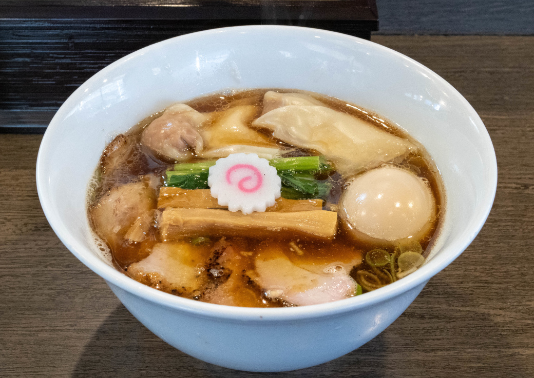 豚バラ … 炭火でじっくりつるし焼きにし、脂を適度に落として旨味をとじ込めています。 《ワンタン》 国産豚ひき肉に生姜をしっかりきかせ、自家製の皮で包み込んでいます。