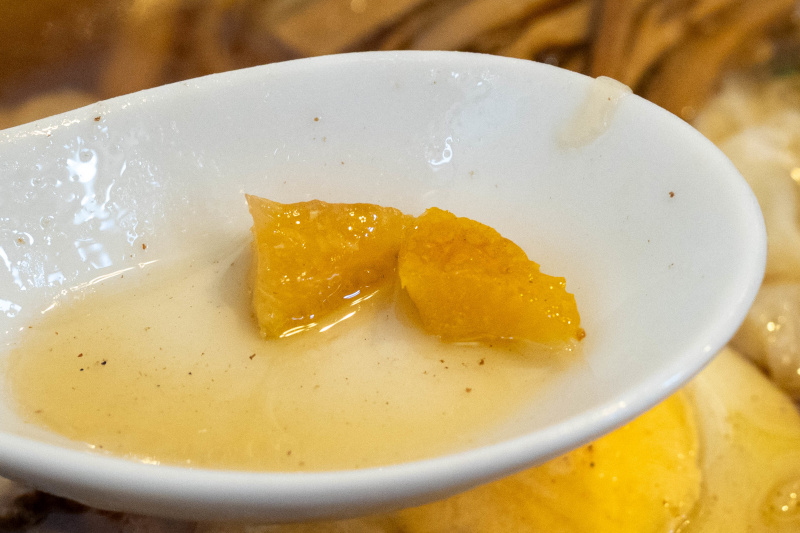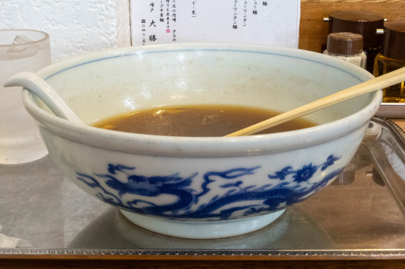 ※ 中華麺・チャーシュー麺は麺2玉、ワンタン麺・チャーシューワンタン麺は麺少なめ (たぶん1.5玉) 中華麺 900 ワンタン麺 1100 小 [2023/7/8] 小 [2023/8/20] 小 [2023/11/5] 小・胡椒なし[2024/1/30] 小・胡椒なし[2024/5/14] 小 [2025/4/10] [2025/10/23] チャーシュー麺 1200 チャーシューワンタンメン 1400 ワンタン 850、チャーシューワンタン 1150 大盛 +250、少なめ -100 メンマ 300・半メンマ 200、ネギ 100、玉子(ゆで・生) 100 《お持ち帰り》 冷凍スープ中華麺 900 (当日持ち帰り可) [2025/4/10] 《お持ち帰り》 冷凍スープ中華麺 900 (前日まで要予約) [2023/7/8] [2024/5/14] 中華麺 850 ワンタン麺 1050 チャーシュー麺 1100 チャーシューワンタンメン 1300 ワンタン 850、チャーシューワンタン 1100 大盛 +250、少なめ -100 メンマ 300、ネギ 50、玉子(ゆで・生) 100 《お持ち帰り》前日まで要予約 冷凍スープ中華麺 850 (参考 2023年5月(前店主)との価格比較) 中華麺 825 ⇒ 850 (+25) ワンタン麺 935 ⇒ 1050 (+115) チャーシュー麺 1045 ⇒ 1100 (+55) チャーシューワンタンメン 1155 ⇒ 1300 (+145) ワンタン 825 ⇒ 850 (+25)、チャーシューワンタン 1045 ⇒ 1100 (+55) 大盛 +275 ⇒ +250 (-25)、少なめ -110 ⇒ -100 (+10) 支那竹(メンマ) 275 ⇒ 300 (+25)、玉子 55 ⇒ 100 (+45)、ネギ 50(新メニュー) お持ち帰り 冷凍スープ中華麺 810 ⇒ 提供なし ▶ ワンタン類が大幅アップだが、従前が安すぎたので納得感がある ▶ 大盛りが若干安くなった ▶ ネギが新たに加わった ▶ お持ち帰りがなくなった ⇒ 2023/12/19から提供開始 |