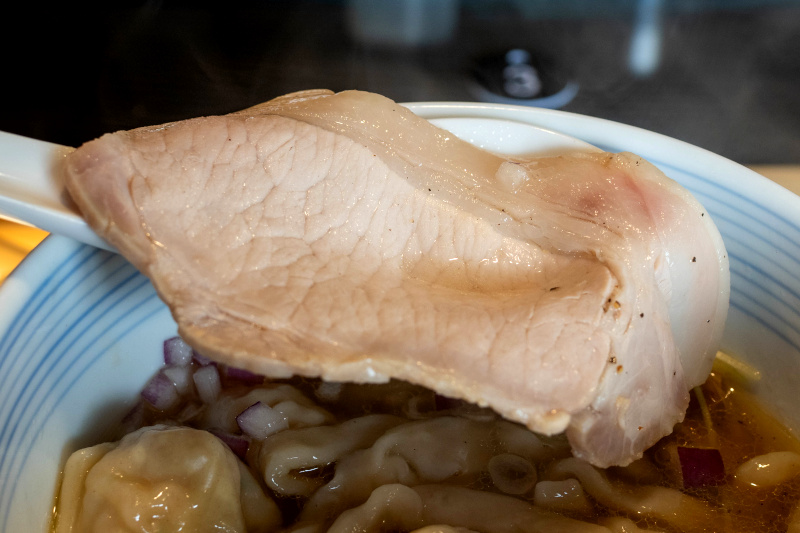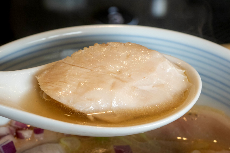 動物系は全く違く、イベリコ豚、松坂豚、川俣しゃもなど旨味のベースに、国産の手羽先やバラ先軟骨が大量に入っています。 手羽先やバラ先軟骨はコラーゲン質が豊富なのすが、コラーゲン質たっぷりのスープにする事で口の中に広がる旨味、香り余韻を楽しんで頂けたらと思います。 香味油はイベリコ豚の脂です。 公式X 2025/10/12 より抜粋、一部ヒアリングにより加筆 チャーシューは、