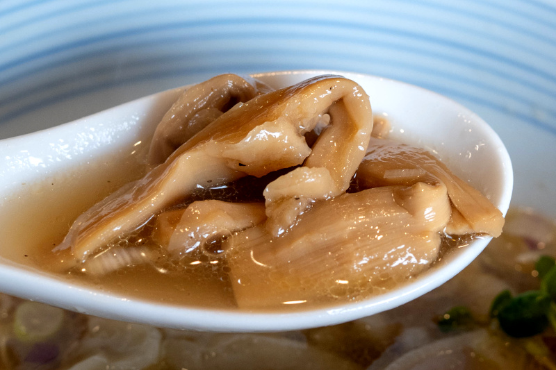 炎のスープは、天然羅臼(昆布)や伊吹いりこなどベースの構成は鴨福と同じ部分もありますが、