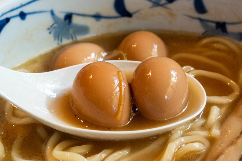 中華そば + 味玉うずら [2026/2/23] ¥1100+¥150 (前回と同様の感想はコピペ) 暖簾、トレイ、箸とも緑色系で統一されている。 動物系に煮干しや鰹節などの和風乾物を合わせたWスープ。 表面には薄く膜が張るほどコラーゲンが溶け出している。 濃厚ながら重さは控えめで、最後まで飽きずに食べ進められるバランス。 無化調でも旨味は十分で、物足りなさは感じない。 味付けは醤油ベースで、ほどよい甘みとまろやかさ、芳醇な風味が広がる。 表面の油はほとんどなく、後味は軽やか。 麺は中太のストレート。 適度な硬さの茹で加減で、なめらかな表面ともちっとした食感。スープとのなじみも良い。 小麦はニップン北海道産100%、浅野さん家の卵を使用。 麺量は200gと、しっかりしたボリューム。 (自家製麺) チャーシューは下田さん家の豚を使ったバラロールの厚切り。脂の甘みと肉の旨味がバランスよく感じられる。 うずらの味玉はやわらかく、味がしっかりと染みている。 メンマは熟成タイプで、コリッとした歯切れと風味の良さが印象的。 薬味は長ネギの白い部分の小口切り。 懐かしさのあるWスープ 丁寧さがあり満足度が高い! |