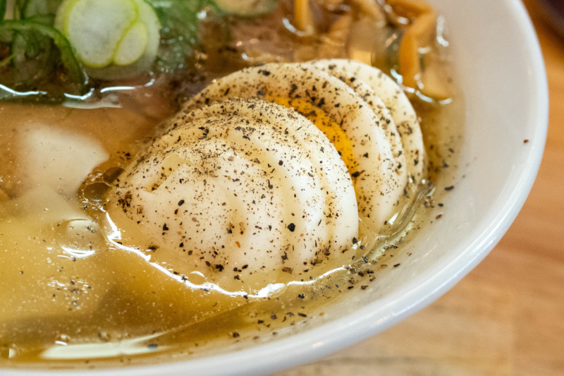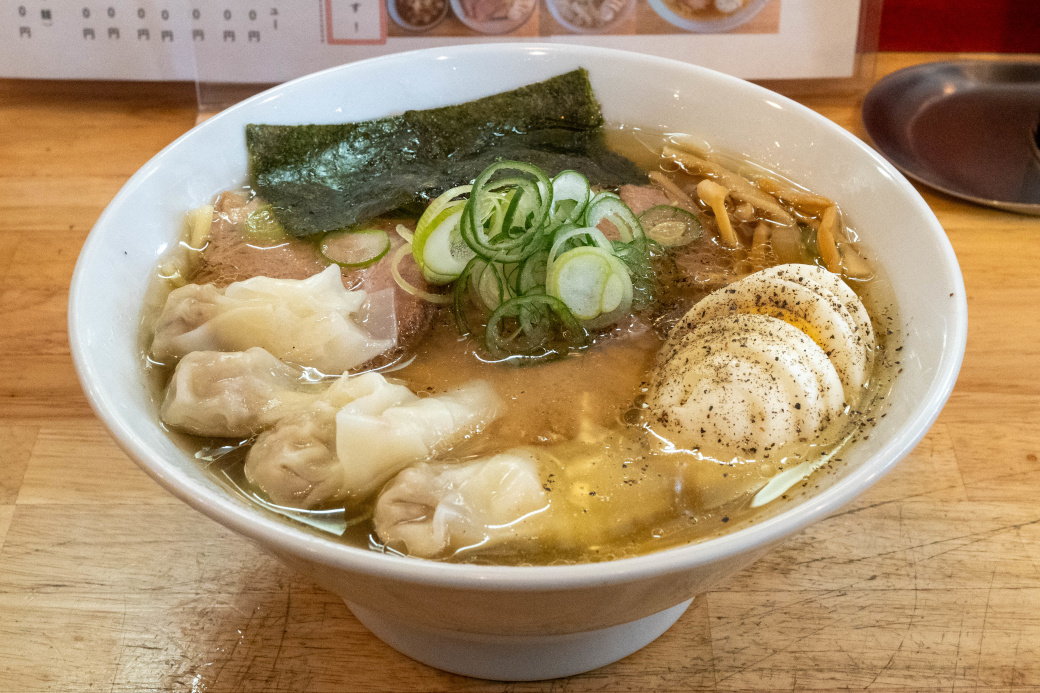 ゆで卵 1人1個まで 無料 岩海苔 100、ネギ・辛ネギ 150、ワンタン 4ヶ 200、 肉増し(煮豚) 200、吊し焼きチャーシュー 200 ライス 150・半ライス 100 3種の炭火炙りチャーシュー丼 ①肉盛り ②こんがりチーズ ③ねぎマヨ 480・ミニ 280 [変更点など]