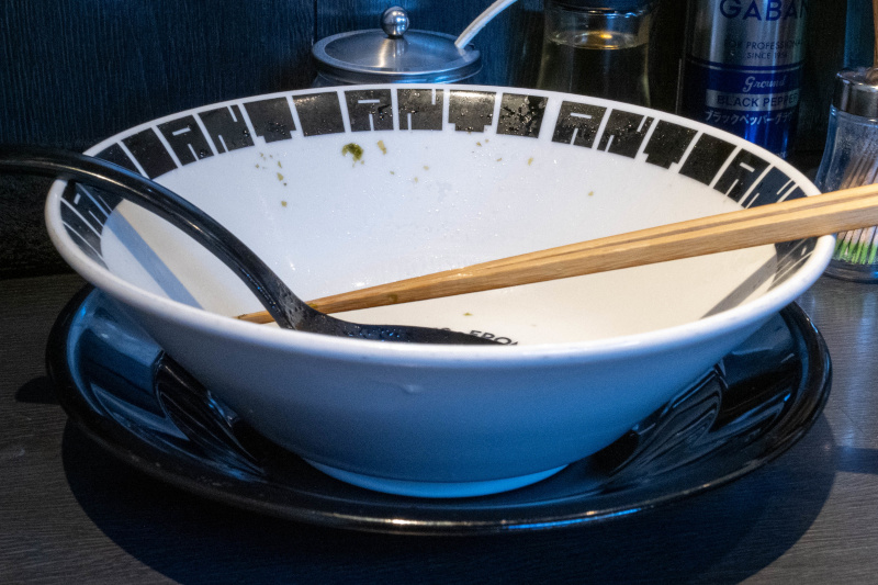 鶏ガラ・背ガラ・もみじ・豚足などを強火で何時間も炊き出した動物系スープと、鯖・鰹などの魚介系スープをブレンド