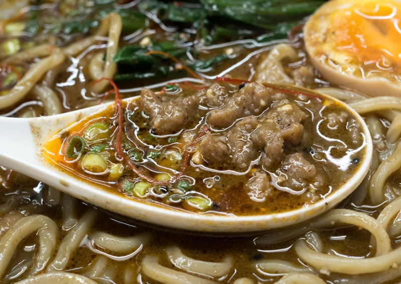 濃厚スープのベースに豚骨や鶏ガラをガツガツ炊いても良かったのですが、ここは大冬樹のコンセプトの「海」を貫き海の食材、鯛白湯スープを起用。スープに鶏や豚の動物性食材を使っていない担々麺ですが、ボディに物足りなさは全くありません。 |
