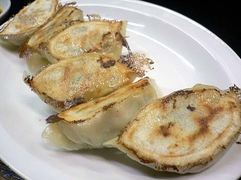 【餃子】 皮は自家製、肉はお店でミンチの手作り。 肉汁がたっぷり。 |