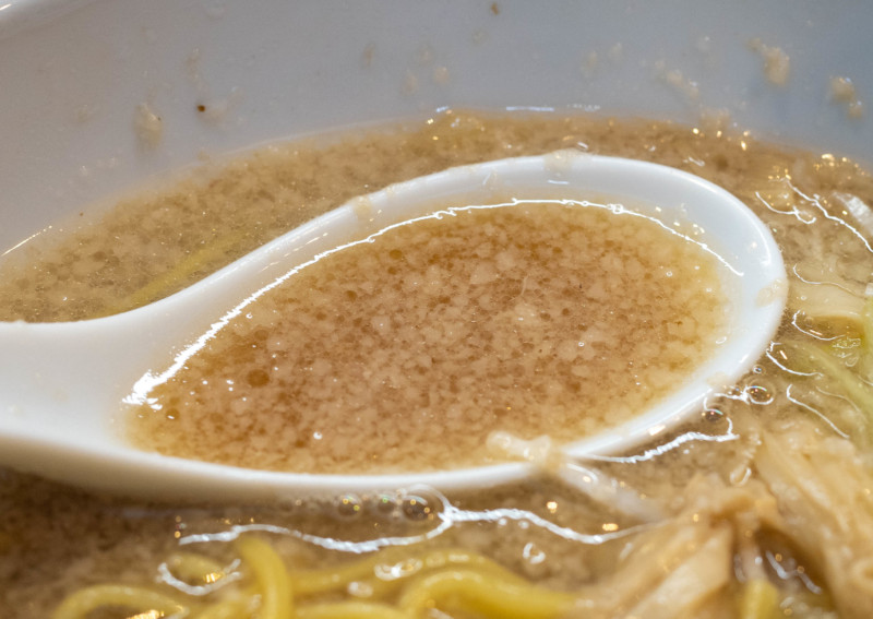 やや濁りのある褐色を帯びたスープは、渡り蟹の風味・甘みがたっぷりで、懐かしさもある味わい。 |