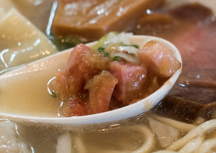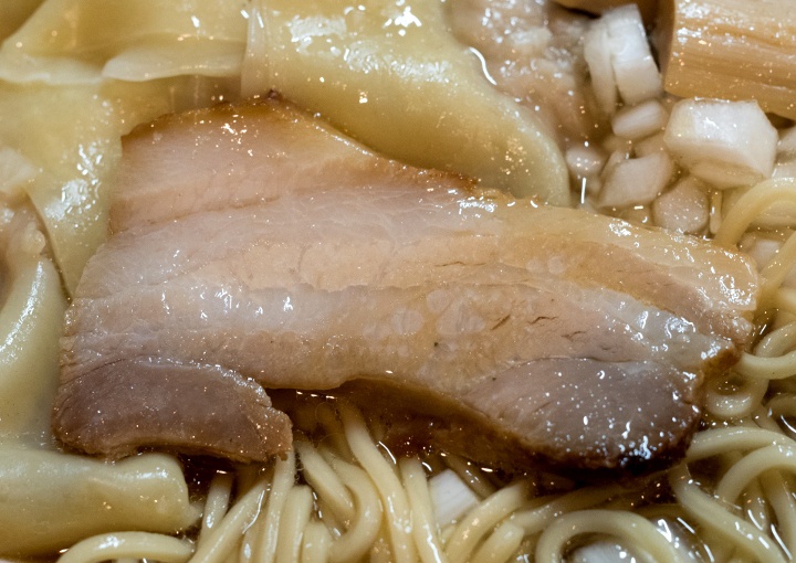 チャーシューは肩ロースの低温調理で、厚めにカットしたものが2枚 |