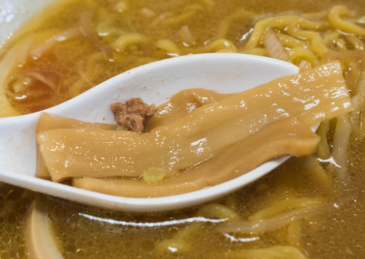 たぶんモヤシと炒めたチャーシューの切り落とし・挽肉が入っている |