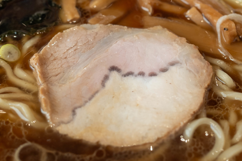 一本一本の麺の太さとコシを確かめながら堪能しよう! 絶妙の火加減で仕上げた春木屋チャーシュー 麺、スープの旨さを引き立てつつも、しっかりとした存在感を放つチャーシュー。