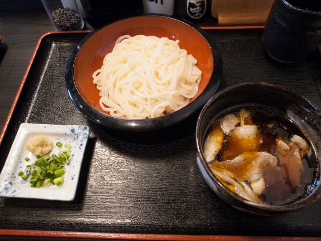 細めでやや平打ちのうどん。 透明感があり、表面は滑らか。コシというより全体的な弾力が適度にある。 自家製ではなく、たぶん冷凍麺。 |