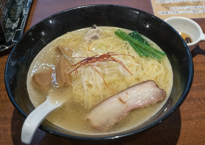 スープ:オーブンで3時間、国産鶏ガラ、もみじ、げんこつ、香味野菜を焙煎し、高級食材の白トリュフを入れた金字塔オリジナル塩スープ |