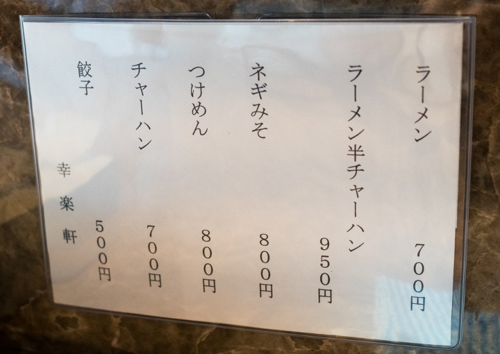 [2016/9/18] ラーメン 700、ラーメン半チャーハン 950 ネギみそ 800 つけめん 800 チャーハン 700 餃子 500