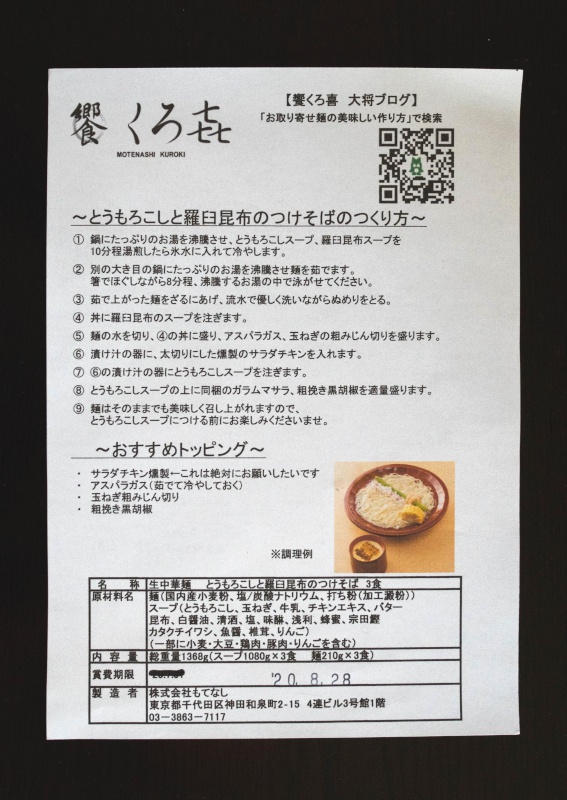 (通販)とうもろこし(きみひめ)と羅臼昆布の冷やしつけそば