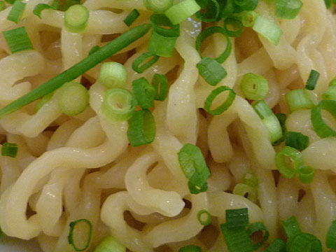 麺は太めの縮れで、プリッとした歯ごたえ。短めなので食べやすい。(大進食品@埼玉とのこと)