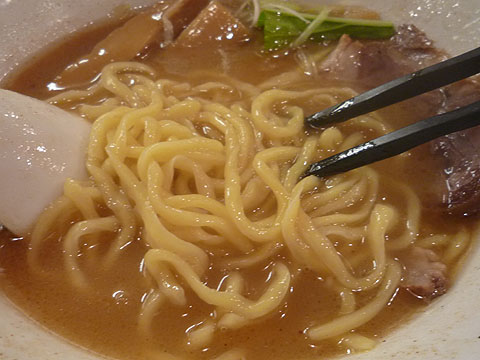 茶濁のスープは豚骨+鶏に鰹節などの和風魚系の風味が満載。一見ありがちなラーメンに思えるものの、鶏がじわりと効いて後半まで飽きずに食べ進める。