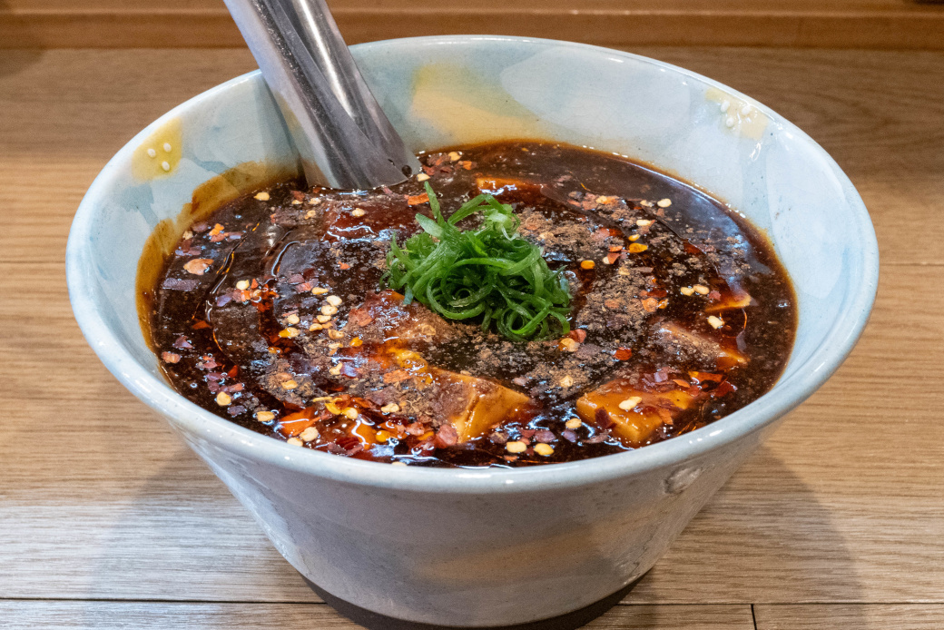 ドロッとしたスープが麺に絡みつく |