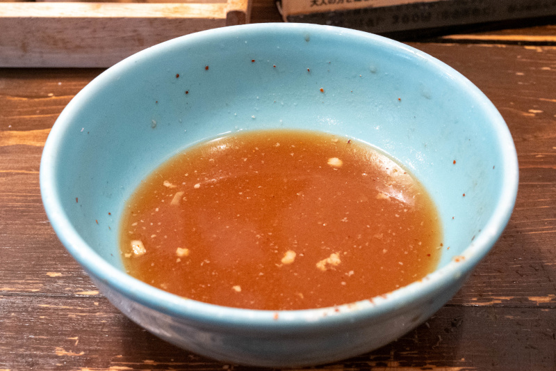和風魚系ダシのスープ割りで熱々のスープに戻り、風味が立ち上がって二度楽しめる |