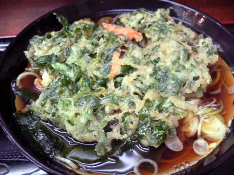 春菊そば \380 生麺茹でたて 風味のあるスッキリとしたつゆ |