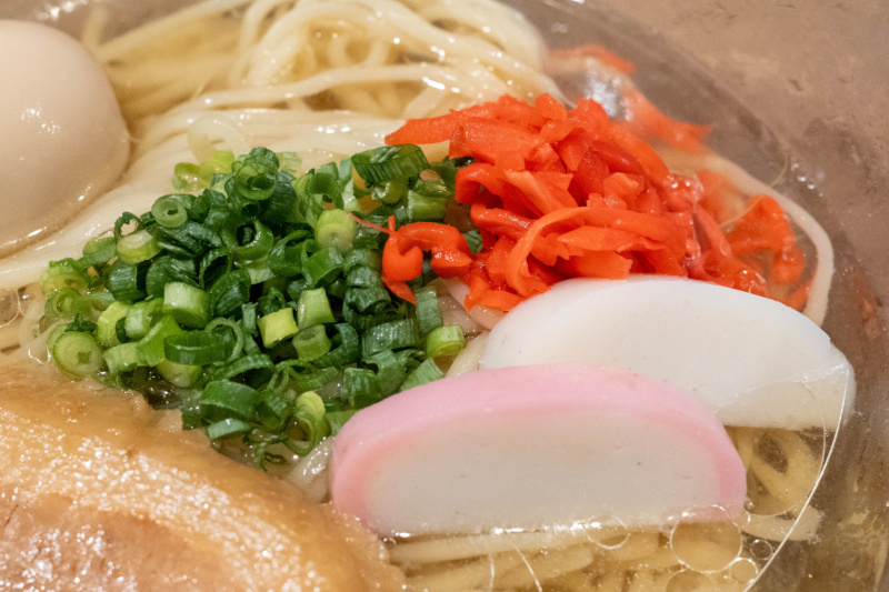 ラー油のピリッとした辛さと背脂の旨みがスープに溶けて体がポカポカと温まります