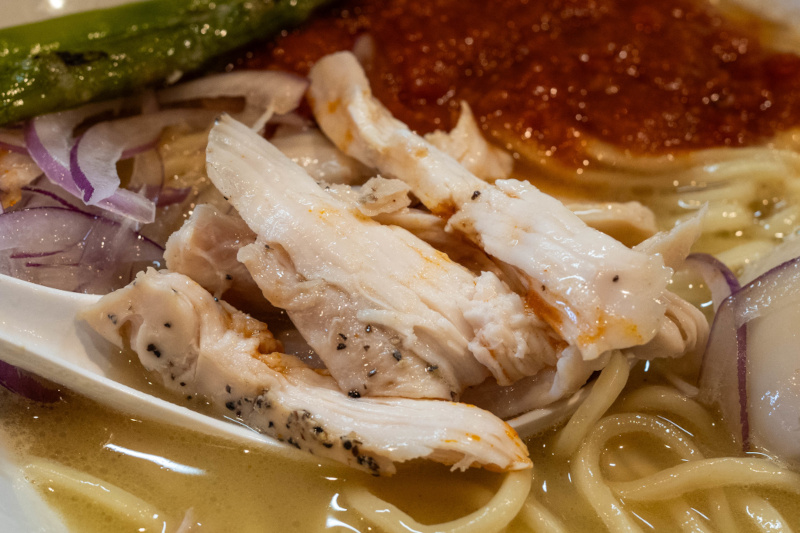 ツルツル、もちもちの太麺がよく合います。 |