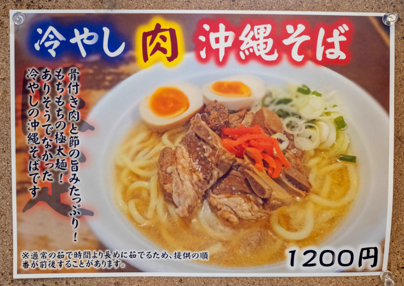 (限定)冷やし肉沖縄そば [2023/8/2] ¥1200 2023/8/1~31 昭島市内のラーメン店6店コラボ 『AKISHIMA RA-FES 夏の冷やし麺』 お店からの告知 限定情報です!