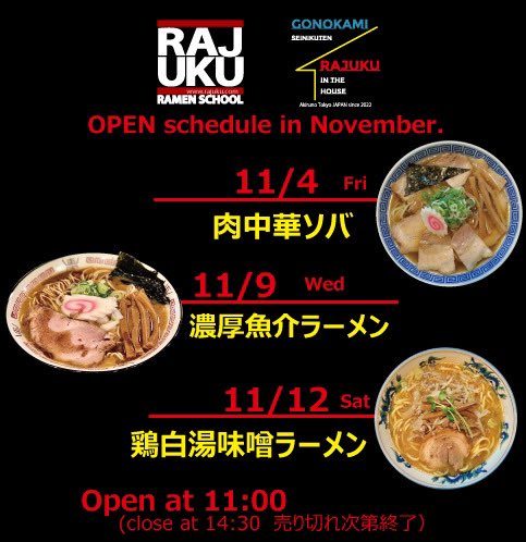 明日11月9日(水)の [RAJUKU IN THE HOUSE] は「濃厚魚介ラーメン」です。