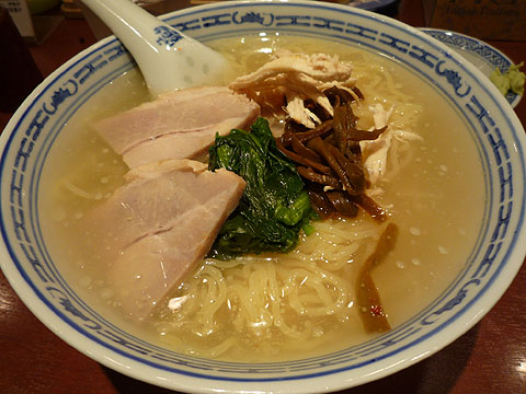 【上湯拉麺(塩)】 \680 極めて透明なスープ。 鶏が良く出ている。 |
