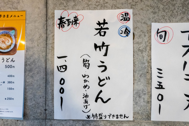 [限定] 若竹うどん 並 [2026/4/18] ¥1400 2026/4/13からの春限定メニュー 公式Instagramより 【春到来‼ 若竹うどん、たけのこ天ぷらスタート】
