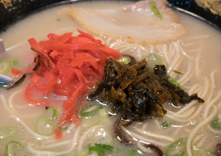 辛子高菜、紅生姜をトッピングして味変 |