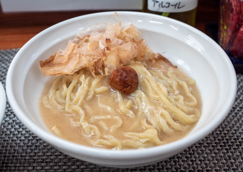 つけ汁は熱々で、鰺煮干しの風味が満載。 |