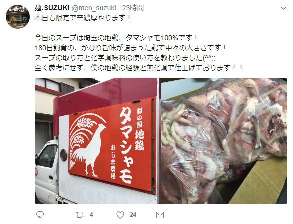 地鶏、小麦粉等の食材価格が高い採算度外視メニューのため、昼営業のみの提供 地鶏100%仕様のため、仕入れ状況、季節や気候によって味が変わります。一期一会のらぁ麺 大盛り、麺固め、味玉以外のトッピングは不可 (以前のメニュー) [2020/12/7]・[2021/6/29] 麺の量(茹で前) らぁめん 通常 150g/大盛り 225g ⇒ 通常 150g/大盛り 230g つけ麺 通常 220g/大盛り 330g ⇒ 通常 200g/大盛り 300g 【醤油・塩】 じんわり美味しい地鶏と煮干しのスープ 麺はロースト胚芽全粒粉の超多加水手揉み麺(太麺) 【特製】 醤油・塩:鶏&豚チャーシュー・那須御用卵の味玉・平田牧場金華豚と比内地鶏の雲呑2個 鶏と水 醤油・塩:ガリシア栗豚と岩手鶏チャーシュー・平田牧場金華豚と比内地鶏の雲呑2個 醤油らぁめん 800、那須御用卵の味玉醤油らぁめん 950、特製醤油らぁめん 1300 塩らぁめん 820、那須御用卵の味玉塩らぁめん [2017/10/29] 970、特製塩らぁめん 1320 鶏と水 醤油 880、味玉入り 鶏と水 醤油 1030、わんたん麺 鶏と水 醤油 1130、チャーシュー麺 鶏と水 醤油 1180、わんたん入りチャーシュー麺 鶏と水 醤油 1430 鶏と水 塩 900、 味玉入り 鶏と水 塩 1050、わんたん麺 鶏と水 塩 1150、チャーシュー麺 鶏と水 醤油 1200、わんたん入りチャーシュー麺 鶏と水 塩 1450 担々麺 900、汁なし担々麺 900 醤油つけ麺 900、特製醤油つけ麺 1400 鶏と水 醤油 鰹昆布水つけ麺 1100 鶏と水 塩 鰹昆布水つけ麺 1100 麺 大盛り +100 ねぎ・穂先メンマ(完全発酵無添加) 100、地鶏出汁の味玉(那須御用卵)150、チャーシュー(豚&鶏mix) 150、わんたん(秋田比内地鶏×平田牧場金華豚 春よ恋100%の自家製雲呑皮) 2個 250 ごはん 150・小 100、卵かけごはん(那須御用卵) 250、焼豚丼 300、ガリシア栗豚のローストポーク丼 ~那須御用卵 卵黄のせ~ 480 ビール中瓶 550、ウーロンハイ 300 (持ち帰り) ガリシア栗豚バラ肉 450、平田牧場 金華豚のわんたん 10個 500 [2019/4/9] 醤油らぁめん 750、味玉醤油らぁめん 900、特製醤油らぁめん(全部のせ) 1050 塩らぁめん 800、味玉塩らぁめん 950、特製塩らぁめん(全部のせ) 1100 (木曜限定 ⇒ [2017/10/20] 通常メニューとなった) 濃厚魚介豚骨 800、味玉濃厚魚介豚骨 950、特製濃厚魚介豚骨(全部のせ) 1100 担々麺 880 (昼のみ提供)鶏と水 醤油 850、 味玉入り 鶏と水 醤油 1000、チャーシュー 鶏と水 醤油 1100 醤油つけ麺 800、特製醤油つけ麺 1100 濃厚つけ麺 850、特製濃厚つけ麺 1150 麺 大盛り +100 ねぎ・穂先メンマ・キャベツ・ガーリックチップ(濃厚魚介専用) 100、地鶏出汁の味玉(那須御用卵) 150、チャーシュー(豚&鶏mix) 150 極厚炙り焼豚ステーキ 590 ごはん 150・小 100、卵かけごはん(那須御用卵) 200、焼豚丼 250、焼豚卵丼(那須御用卵) 300 おつまみ 300・大 500 ビール中瓶 550、ウーロンハイ 300、酒 500、狭山茶コーラ 300 (以前のメニュー) 味玉・チャーシュー・メンマ・ニンニクチップ 100、特製 +250 (寒い日限定)辛濃厚魚介豚骨 ~自家製辣油と辛味噌仕立て~ 850、特製(全部のせ) 1100 麺 大盛り 無料 極厚炙り焼豚ステーキ 500 (約200g、お試し価格) お持ち帰り 1300 (1食150g 麺・塩だれ 5食セット、化学調味料・保存料未使用)