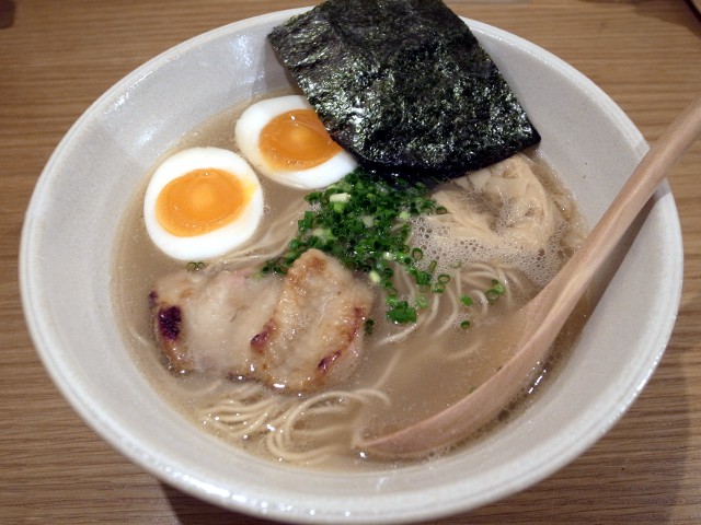 【鶏ポタラーメン 特濃】 [2012/1/10] \680 じっくり煮込んだ鶏白湯スープに、5種類以上の野菜で作ったスープは、その名のとおりとろみがある。 鶏を強めに感じ、徐々に野菜の甘味を感じる。油が少ないこと・化学調味料未使用のため、見た目よりもさっぱりとしている。 温度が高い。 味付けは塩ベースで控えめ。 貝柱・干し椎茸・昆布に沖縄産の自然海塩を加えているとのこと。 麺は細麺ストレート。 食券を渡す際に硬め指定も指定できるが初回なので普通にしてみたが、十分な歯ごたえがある。 |
