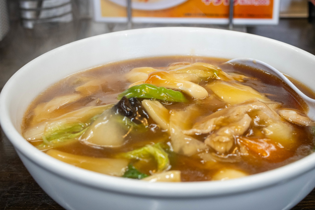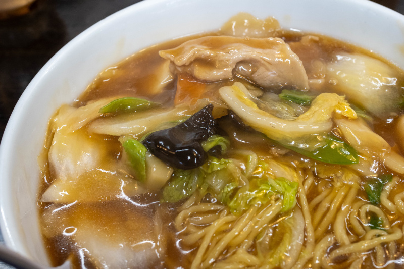チャーシューは入っておらず、海老、野菜、キクラゲなど |
