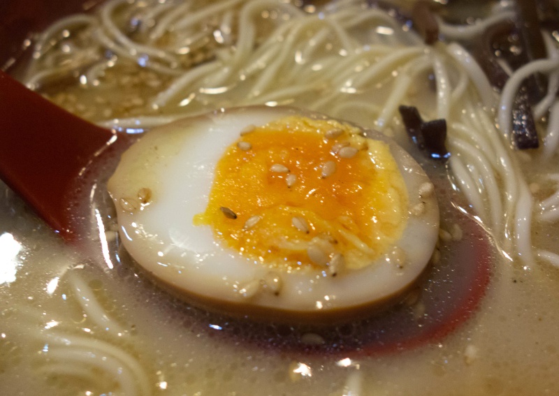 【ラーメン】 [2000/4/29] \600 透明感のある白茶濁スープに細めのストレート麺。 |
