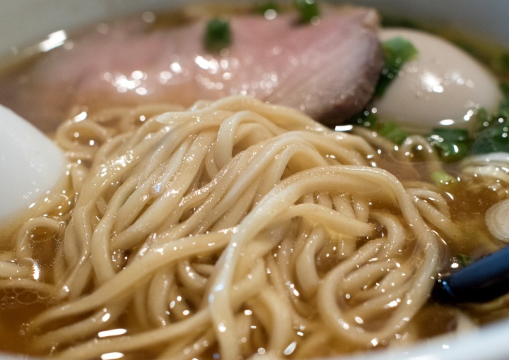 味付け玉子は、白身全体が色づき、黄身はしっとりとした半熟。 |
