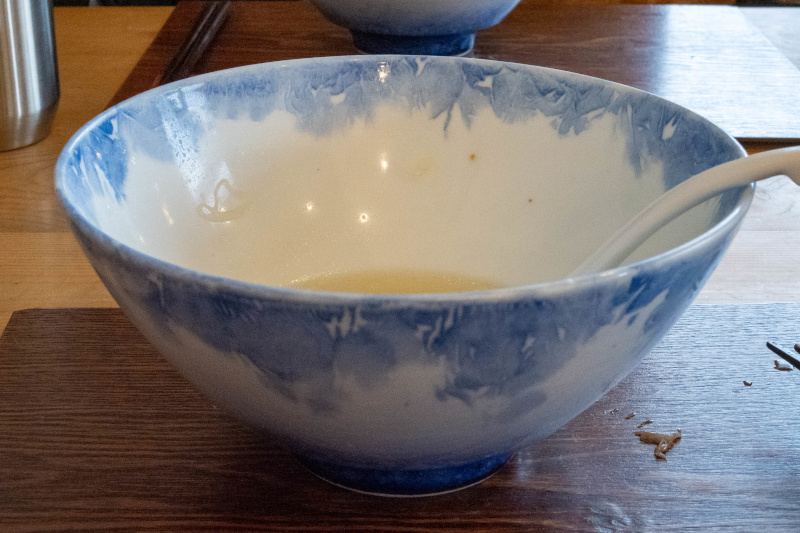 背脂・揚げネギが浮いたスープ |