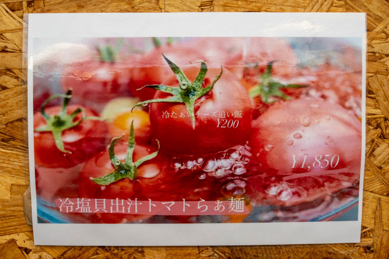 冷塩貝出汁トマトらぁ麺+チーズ追い飯 [2023/8/11] ¥1850+¥200 2023/8/10 からの夏季限定メニュー第二弾 店主より 本日は小麦粉は、キタノカオリなどの小麦粉を使用しているとのこと。