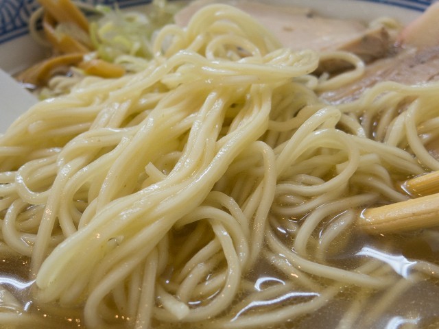 チャーシューは鶏モモ肉と豚バラ肉で、適度に脂身がある。 |