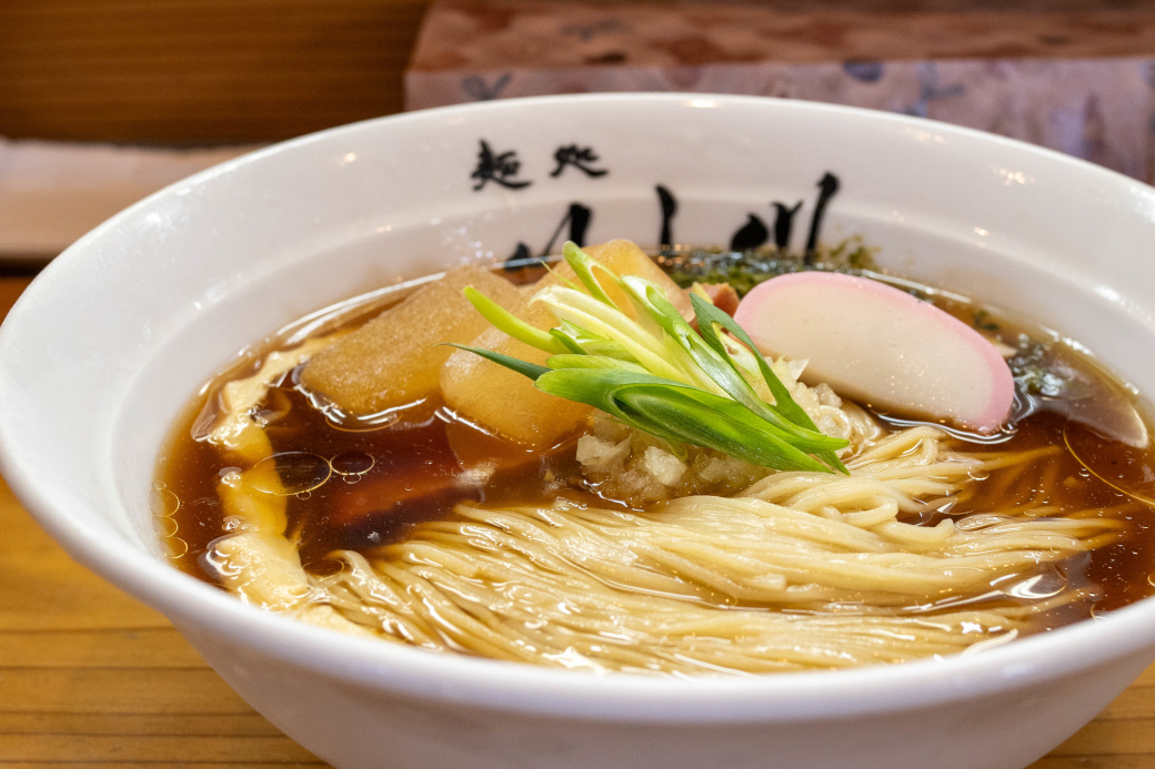 平子節を減らして、鰹節、宗田節を追加しました。 かなり良い感じの仕上がりなので是非ッ! 特に醤油 (以前と同じ感想はコピペ) 透明感のあるスープは、鶏などの動物系に鰹節・煮干しや乾物など様々な素材から染み出た旨味が幾重にも押し寄せてくる。 平子節を減らして、鰹節、宗田節を追加したことで、よりバランスの良い味わいになったと感じる。 味付けはキッコーゴ(近藤醸造@秋川)を使用しているので、香ばしい醤油の風味がダシと良く合っている。 表面には透明な脂が少量浮いていて、スッキリとしているが、インパクトのある味わい。 化学調味料を使用していないため、旨味は強いが変なベタつきがないのが大きな特徴。 麺は細麺ストレートで、きれいに整えてある。 適度な硬さの茹で上げ。 表面がツルツルで、サクッとした歯切れ感があり、なめらかさがありスープに良く合う。 (五ノ神製麺) チャーシューは2種。 豚チャーシューは肩ロースで、炭火焼きの香ばしさと肉の旨味がある。 鶏チャーシューはムネ肉で、しっとりと柔らかい。 レンコンの輪切りはサクサク。 その他の具は、海苔、花麩。 薬味は、青ネギの小口切り、長ネギの白い部分のみじん切り。 麺・スープ・具それぞれが美味しいとともに、全体のまとまりがとても良く、食べ終えた時の満足度が非常に高い。 |
